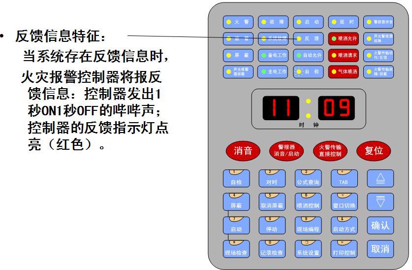 4.控制器可配置多塊手動消防啟動盤,完成對總線制外控設備的手動控制;可配置多塊14路直接控制盤,完成對消防控制系統中重要設備的控制;可擴充消防廣播控制盤和消防電話控制盤,組成消防廣播和消防電話系統;每個回路最多可同時配置4臺64點手動消防啟動盤+4臺14路直接控制盤+兩個消防廣播控制盤(或2個消防電話控制盤或1個消防廣播控制盤+1個消防電話控制盤)