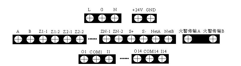 火警傳輸A、火警傳輸B:連接火警傳輸設備通訊總線端子(選配);