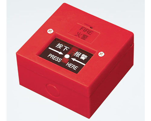 上圖為普通型消火栓按鈕,如圖所示按鈕中沒有啟動和回答指示燈,只有一塊玻璃,玻璃破碎時報警觸點就會啟動,從而達到報警功能。